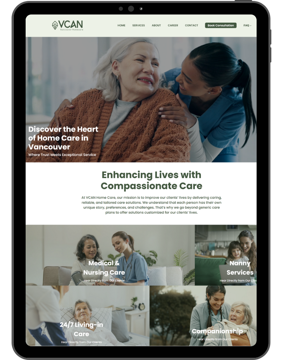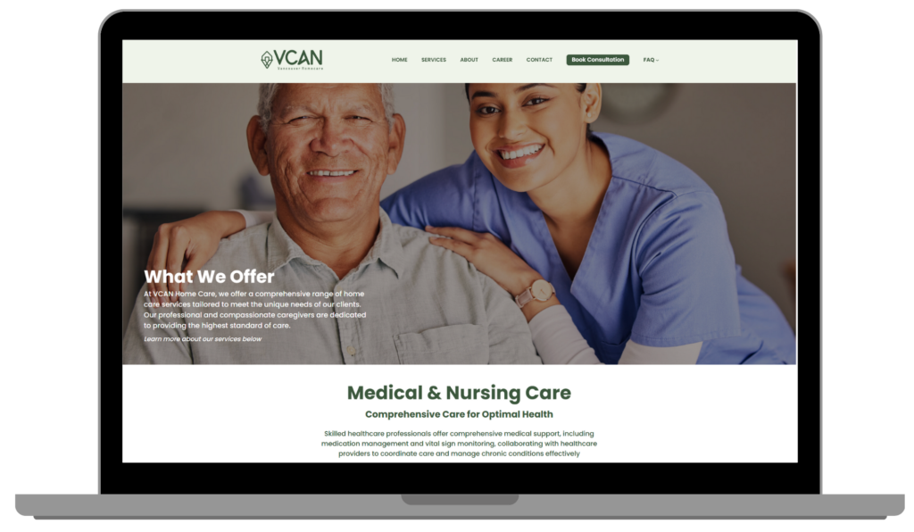 Providing personalized medical and home support for Vancouver families. But their online presence didn’t reflect their values. Their old site lacked warmth, clarity, and structure—making it harder to communicate trust and professionalism to potential clients. They needed a digital space that would feel inviting, modern, and reliable.